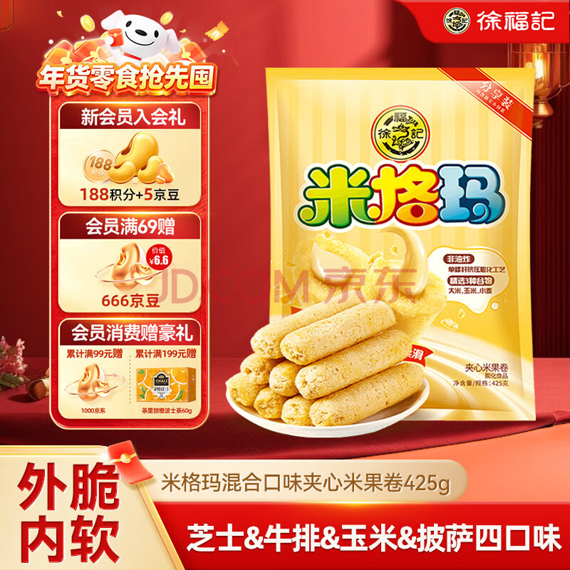 商品相册:徐福记米格玛夹心米果卷425g/袋饼干约35根小包装休闲零食下午茶第