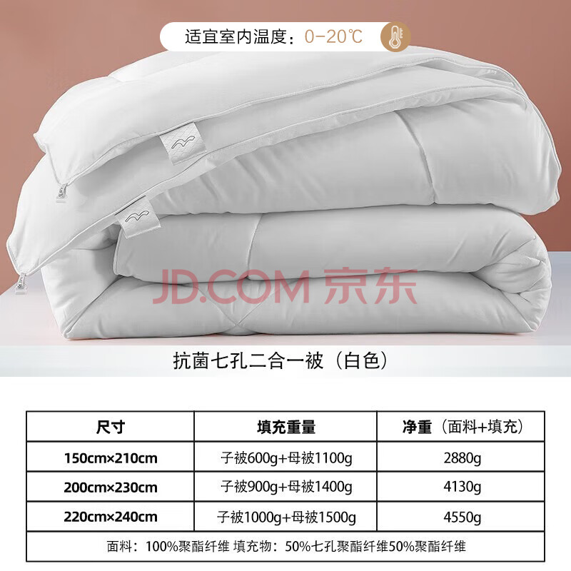 商品相册:水星家纺被子冬季被子母被芯二合一纤维被褥约5.7斤150*210cm白第