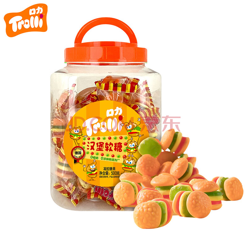 商品相册:Trolli德国口力 汉堡软糖 500g(约56颗) 桶装 休闲零食 儿童糖果第