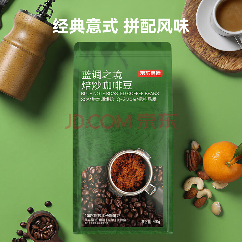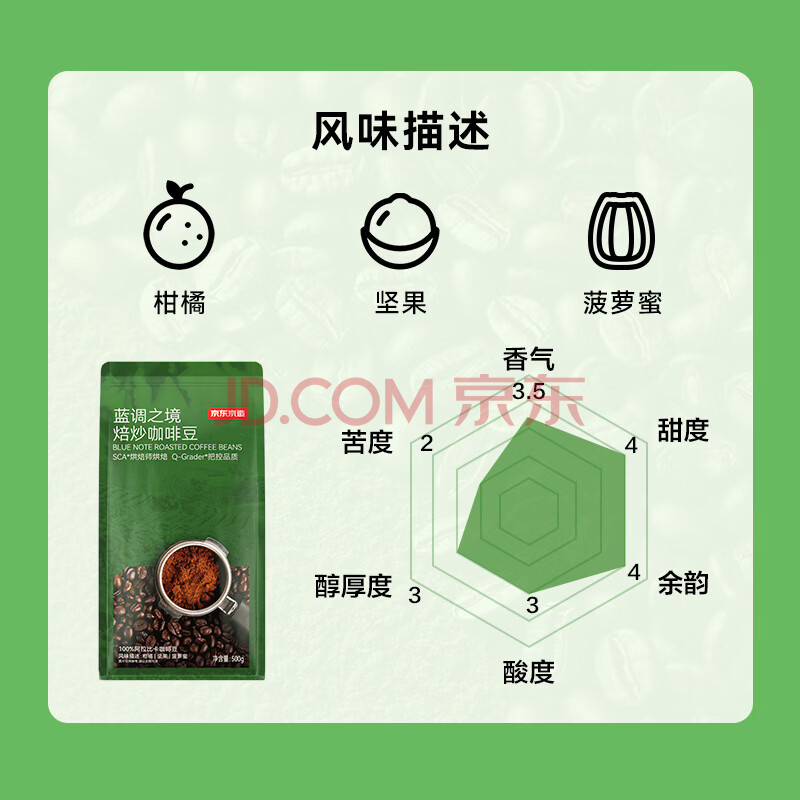 商品相册:京东京造 鲜来多 蓝调之境咖啡豆500g蓝山风味咖啡100%阿拉比卡中度烘焙第