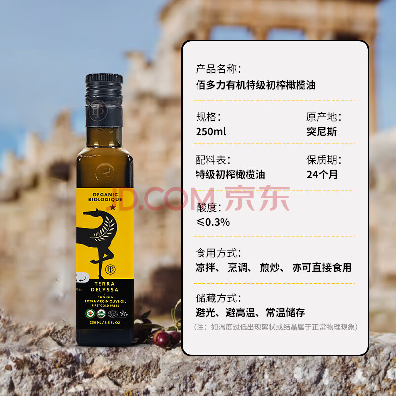 商品相册:佰多力【保真橄榄油】有机特级初榨橄榄油250ml食用油第