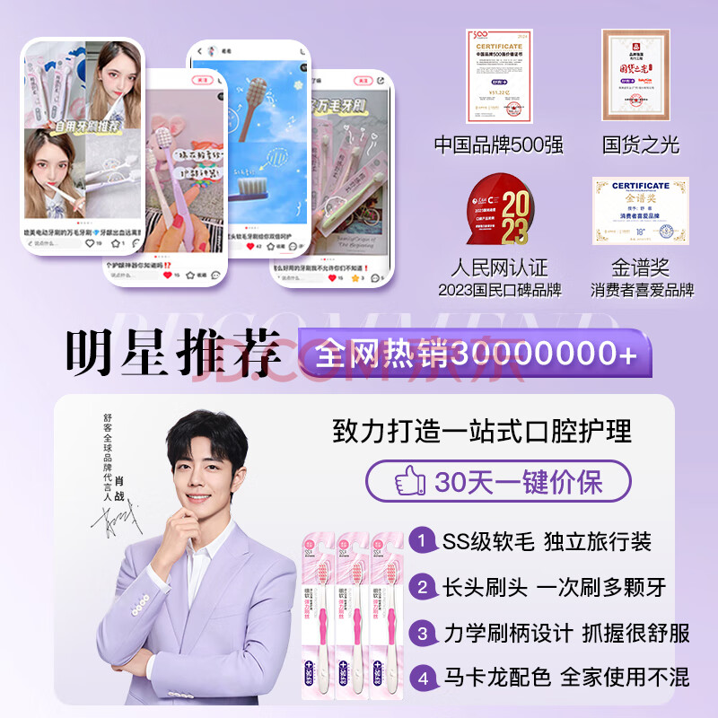商品相册:舒客柔丝护龈成人情侣软毛牙刷3支装 深洁装旅行长头刷颜色新老随机第