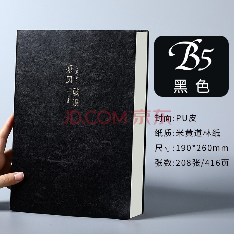 商品相册:嘉然恒商务简约笔记本本子B5大号超加厚416页记事本文具学生复习日记本办公日志会议记录本可定制 黑色第