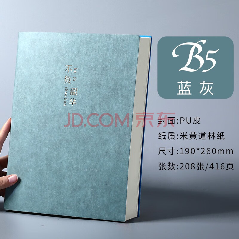 商品相册:嘉然恒商务简约笔记本本子B5大号超加厚416页记事本文具学生复习日记本办公日志会议记录本可定制 蓝灰色第