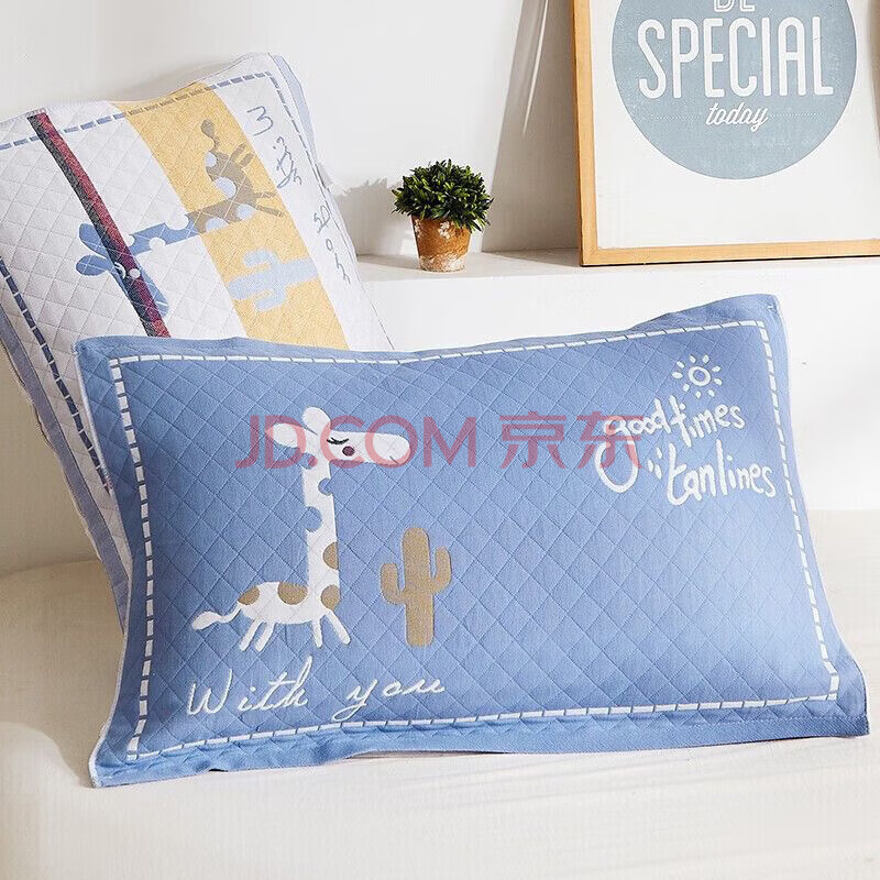 商品相册:艾薇枕巾全棉一对学生儿童枕巾夹棉家用枕头巾 小鹿蓝 52*78cm第
