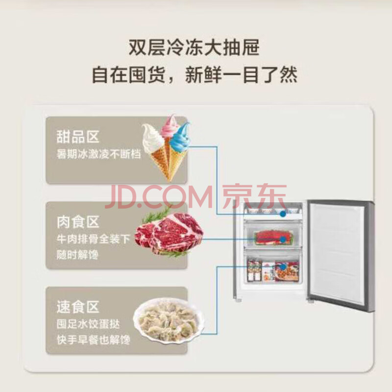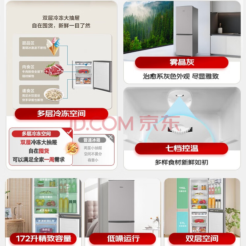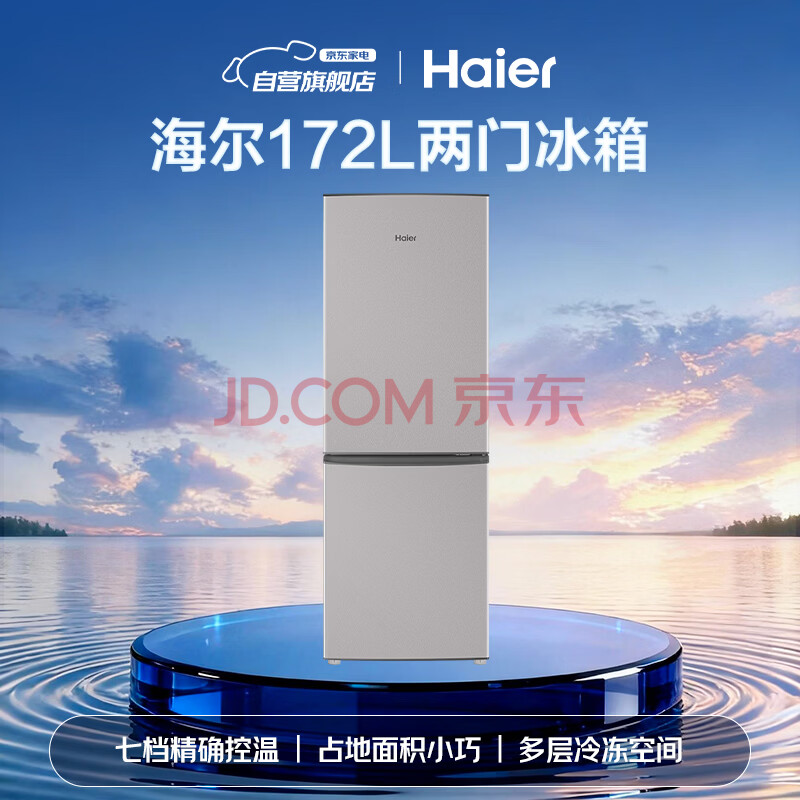 商品相册:海尔冰箱172升小冰箱双开门租房家用小型节能冰箱小巧不占地BCD-172LHC2E0GH银色系第