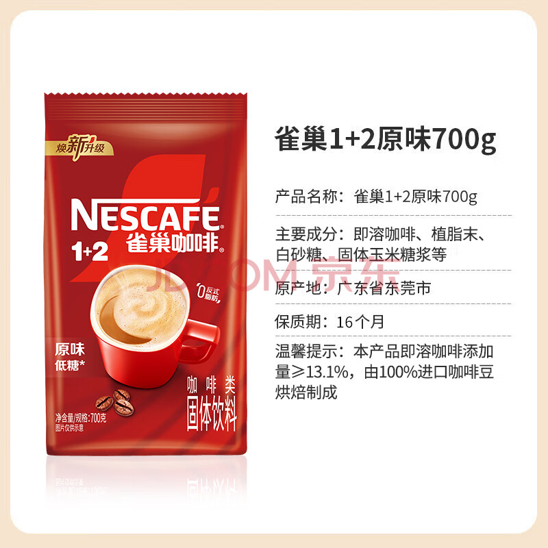 商品相册:雀巢(Nestle)雀巢咖啡 1+2原味咖速溶咖啡粉700g/袋 速溶三合一低糖袋装第
