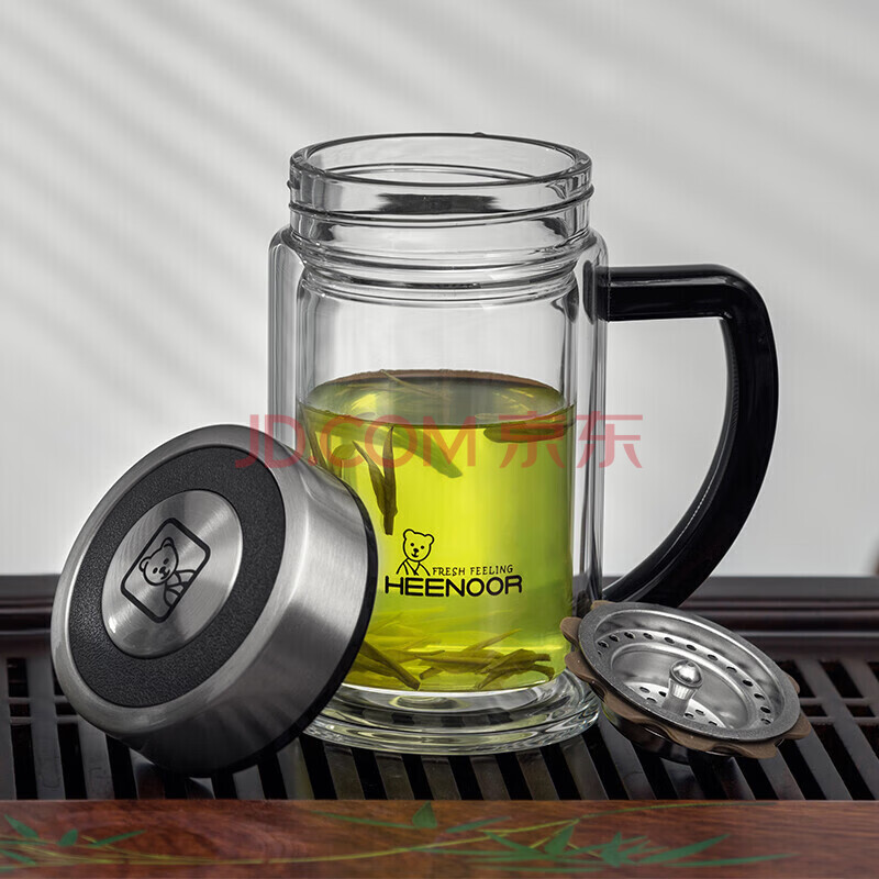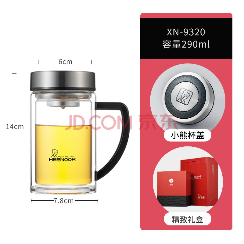 商品相册:希诺双层玻璃杯男家用商务办公水杯带手柄泡茶杯子XN-9320 290mL第