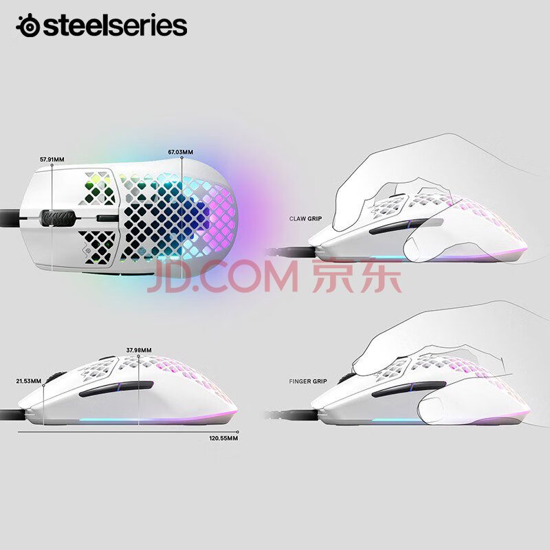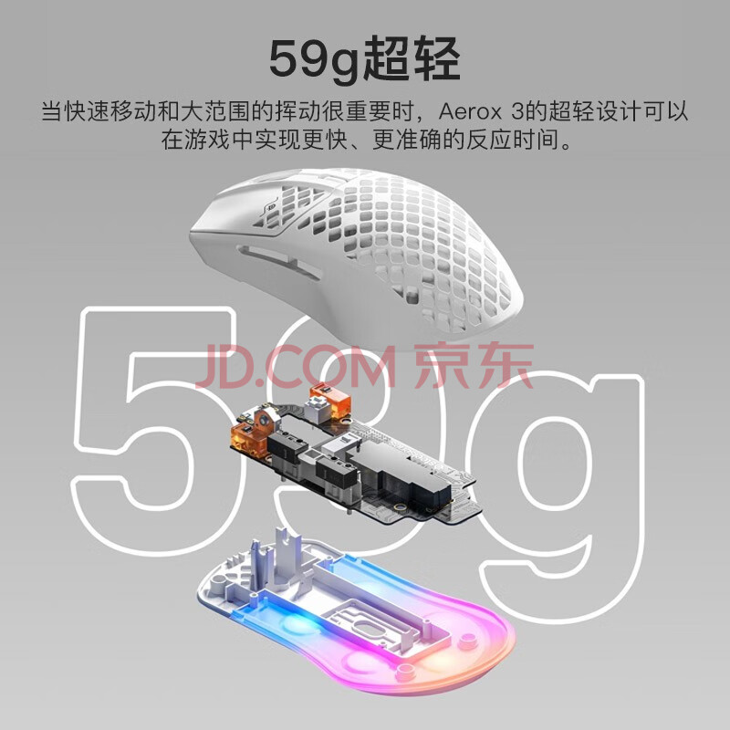 商品相册:赛睿(SteelSeries)Aerox3 有线游戏鼠标 洞洞鼠镂空电竞鼠标 战队推荐FPS/无畏契约/CS2专用鼠标 轻量化59g 白色第