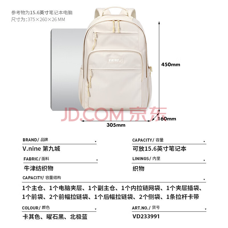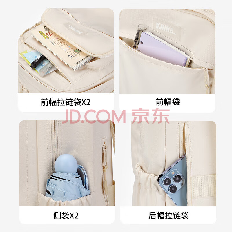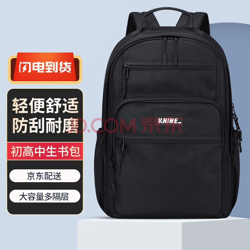 商品相册:第九城(V.NINE)书包初高中生双肩包男女生背包4-6年级大容量书包14/15英寸电脑包第
