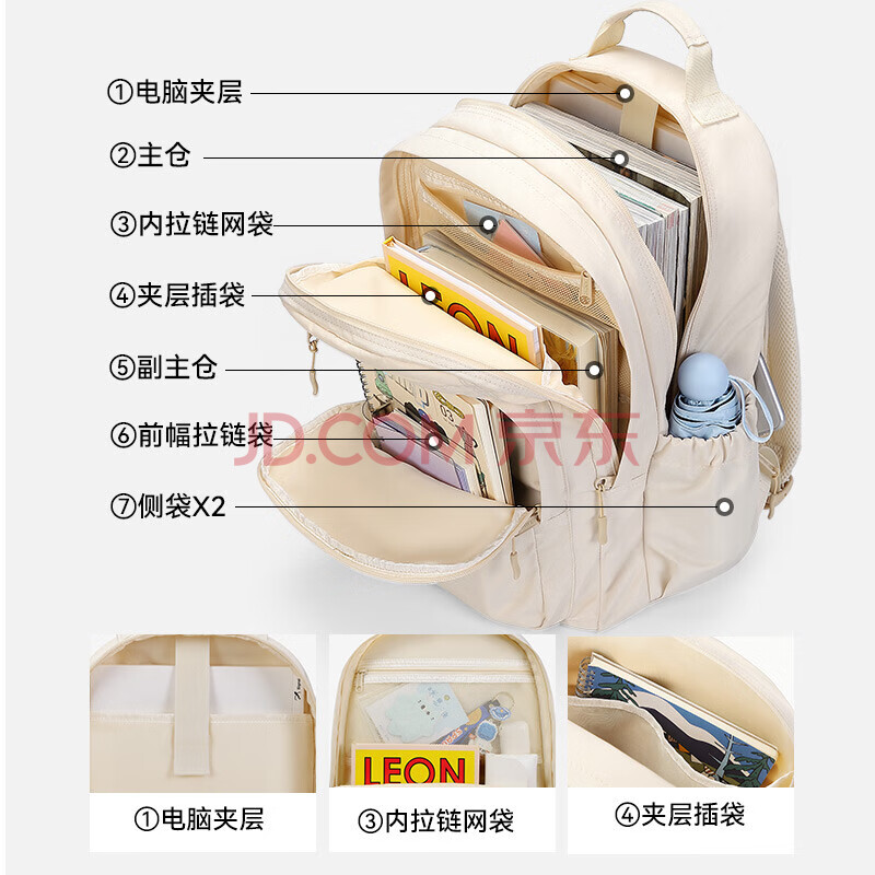 商品相册:第九城(V.NINE)书包初高中生双肩包男女生背包4-6年级大容量书包14/15英寸电脑包第