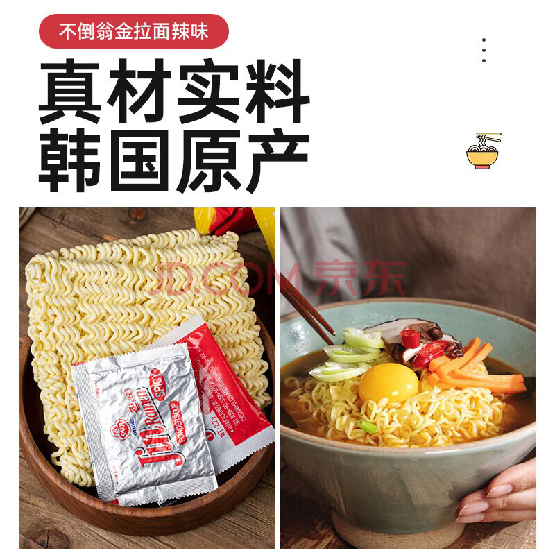 商品相册:不倒翁韩国进口 辣味金拉面120g*5包 潘帅同款泡面 香辣韩式方便面袋装第