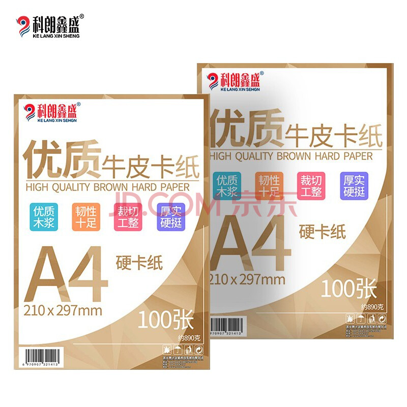 商品相册:科朗鑫盛牛皮a4硬卡纸手工剪纸书皮纸绘图绘画纸加厚打印纸标书装订财务包角凭证封面牛皮纸A4 120g100张第