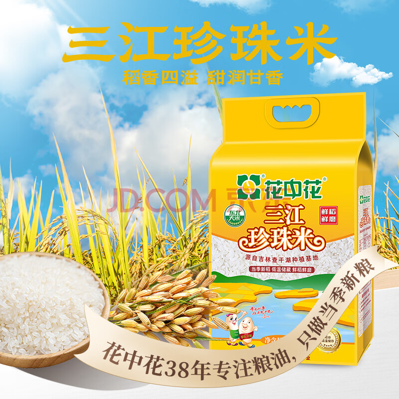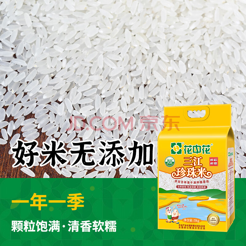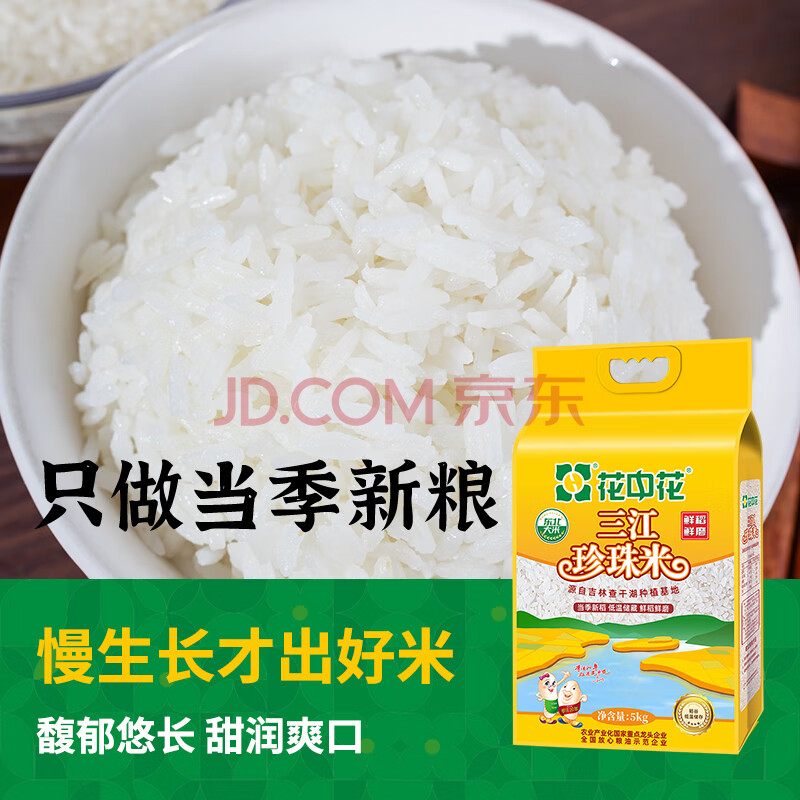 商品相册:花中花东北大米 三江珍珠米 10斤 当季新米 家庭装长粒香米一级大米第