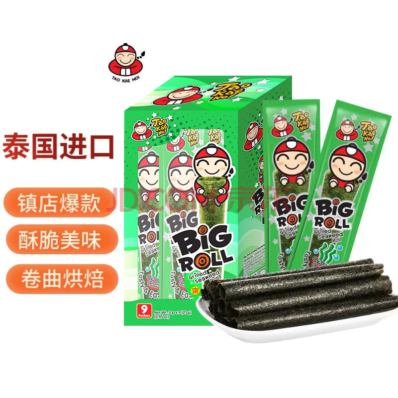商品相册:老板仔海苔卷原味 泰国进口 脆紫菜 儿童 休闲零食 独立包装3g*9条第