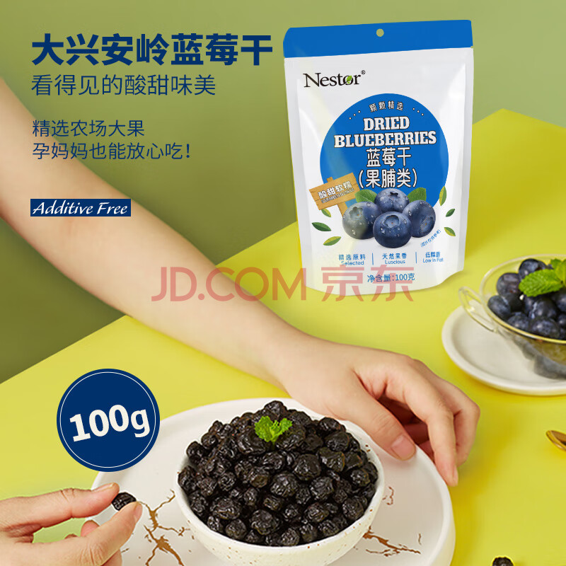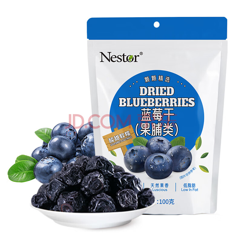 商品相册:Nestor蓝莓干无添加剂无色素烘焙饼干可用办公室护眼休闲零食蜜饯100g第1张/共5