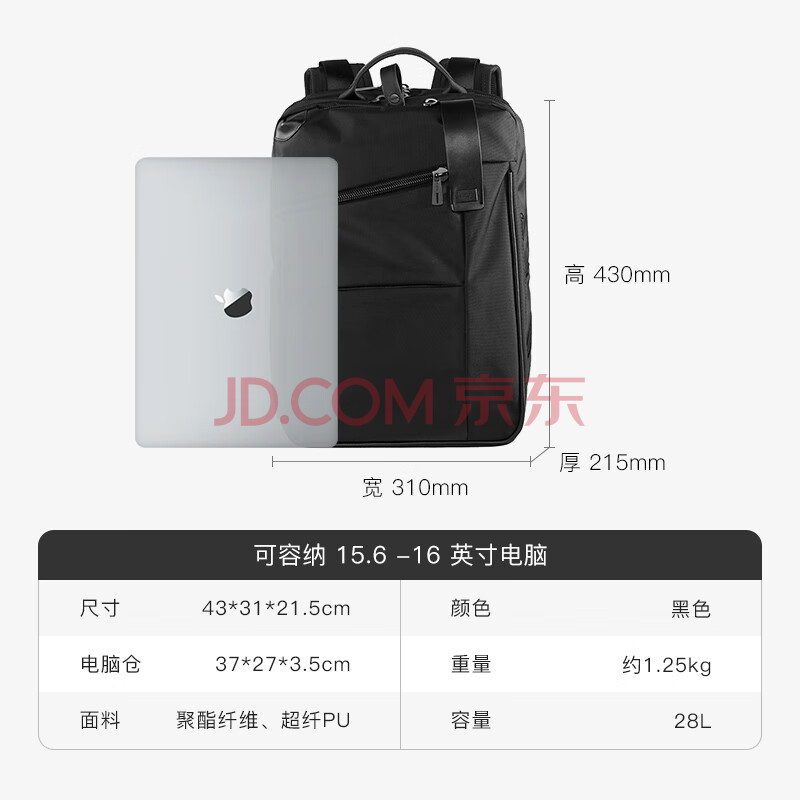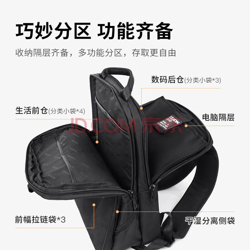 商品相册:乐上(LEXON)商务双肩包男双隔层15.6/16英寸电脑包笔记本旅行包书包PU材质第