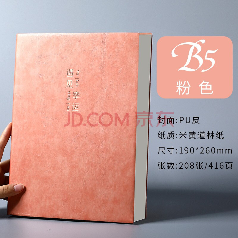 商品相册:嘉然恒商务简约笔记本本子B5大号超加厚416页记事本文具学生复习日记本办公日志会议记录本可定制 粉色第