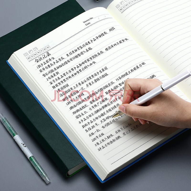商品相册:嘉然恒 商务简约笔记本本子A5超加厚416页记事本文具学生复习日记本办公日志会议记录本可定制 蓝灰色第