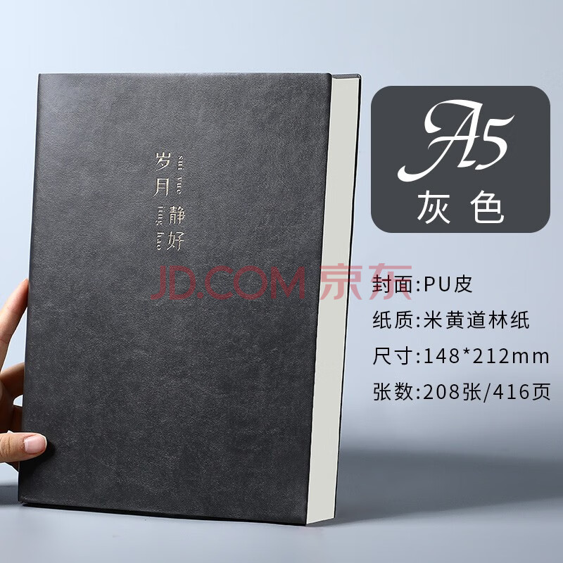 商品相册:嘉然恒 商务简约笔记本本子A5超加厚416页记事本文具学生复习日记本办公日志会议记录本可定制 灰色第