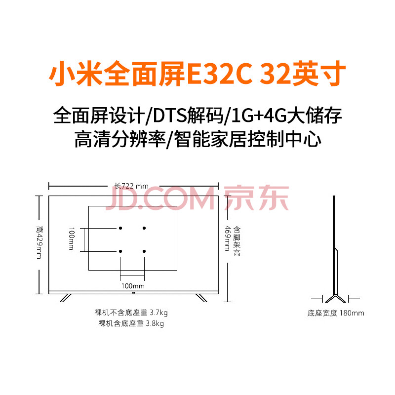 商品相册:小米电视E32C 32英寸 全面屏 人工智能液晶网络高清四核处理器 教育电视机 L32M5-EC【支持LOGO定制】第