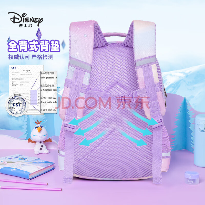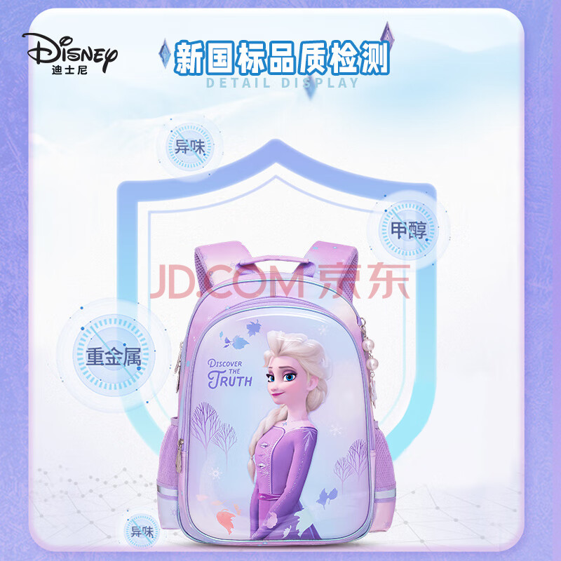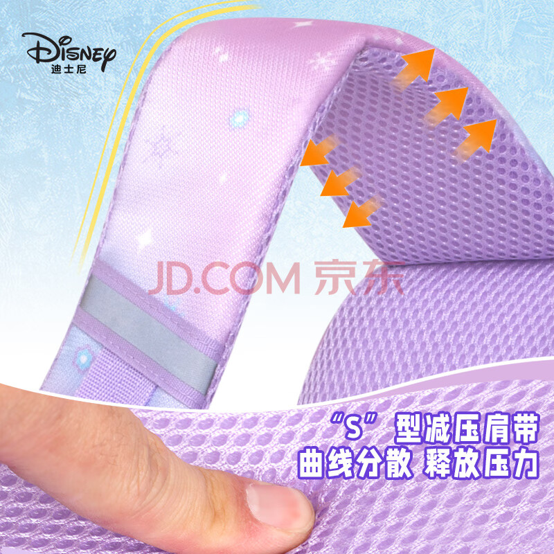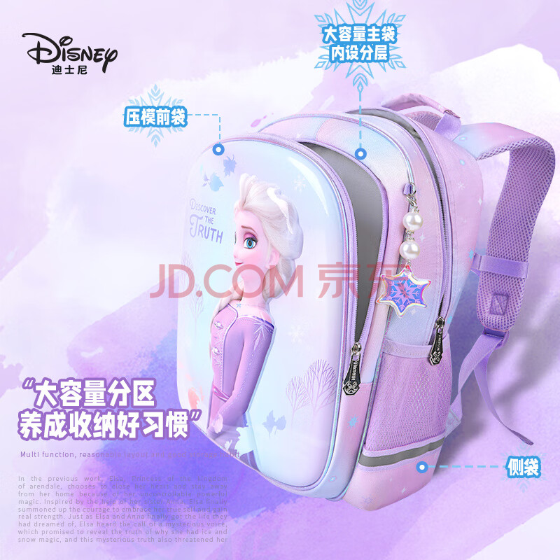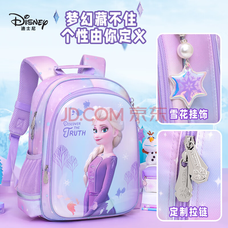 商品相册:迪士尼(Disney)书包小学生女童1-3年级3D压膜高颜值抑菌透气双肩包爱莎公主紫色第