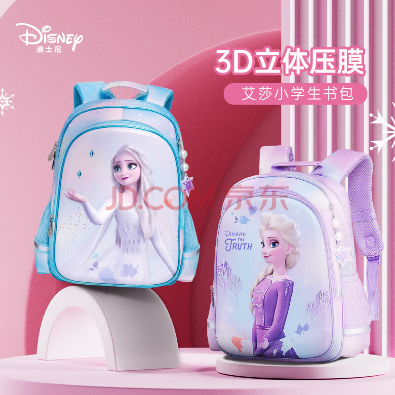 商品相册:迪士尼(Disney)书包小学生女童1-3年级3D压膜高颜值抑菌透气双肩包爱莎公主蓝色第