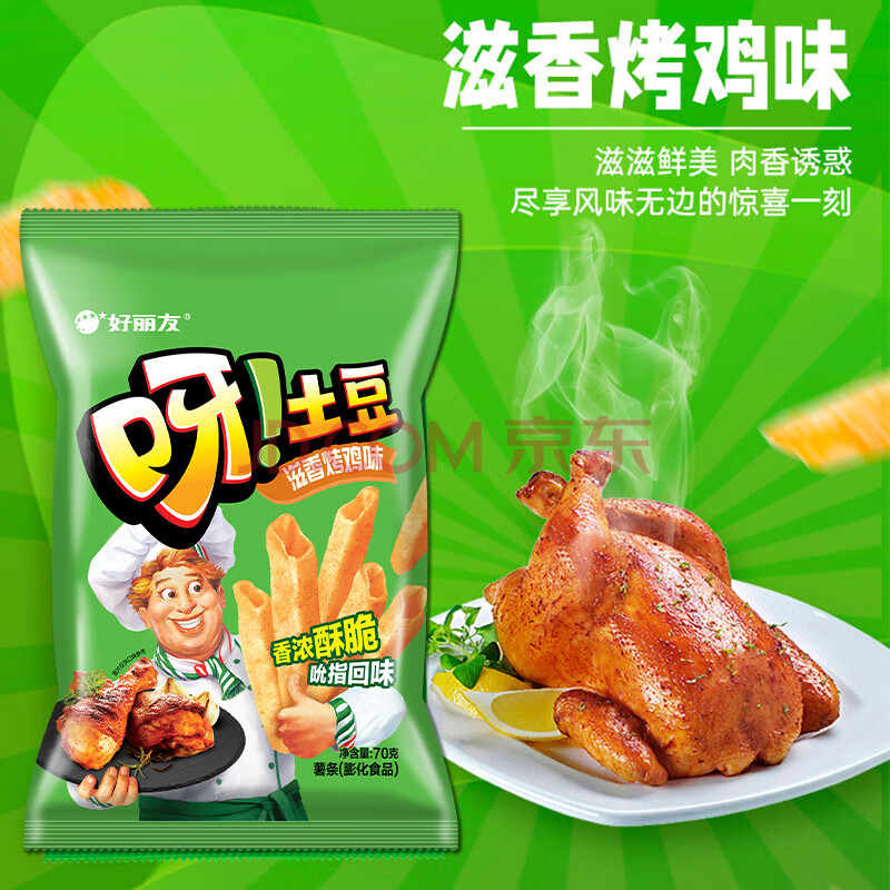 商品相册:好丽友(orion)呀土豆滋香烤鸡味70g/袋 休闲零食薯条膨化食品小吃第1张/共4