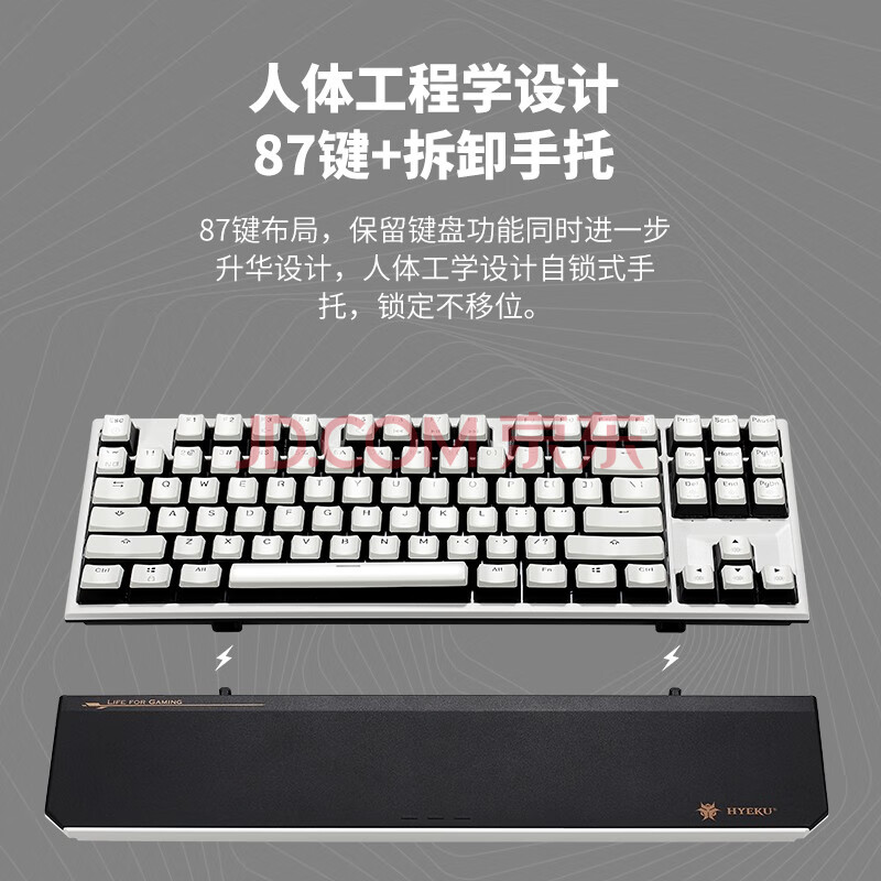 商品相册:黑峡谷(Hyeku)X3Pro87键无线蓝牙三模电竞机械游戏键盘热插拔PBT键帽附卡扣手托黑森林慕斯 凯华BOX玫瑰红轴第