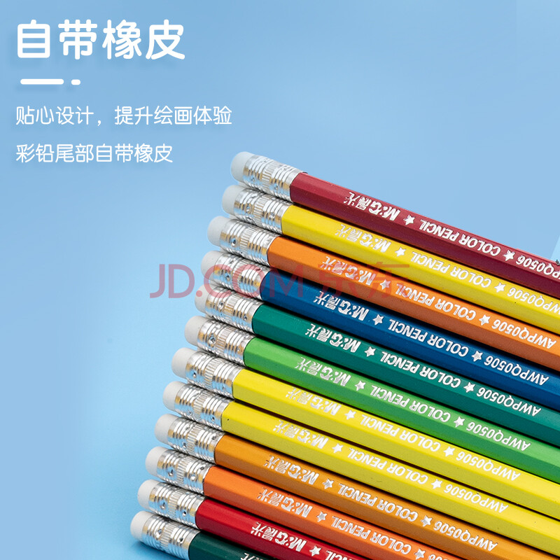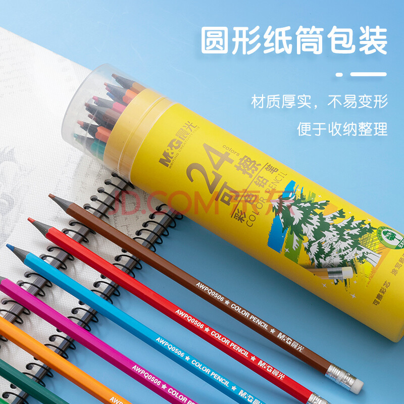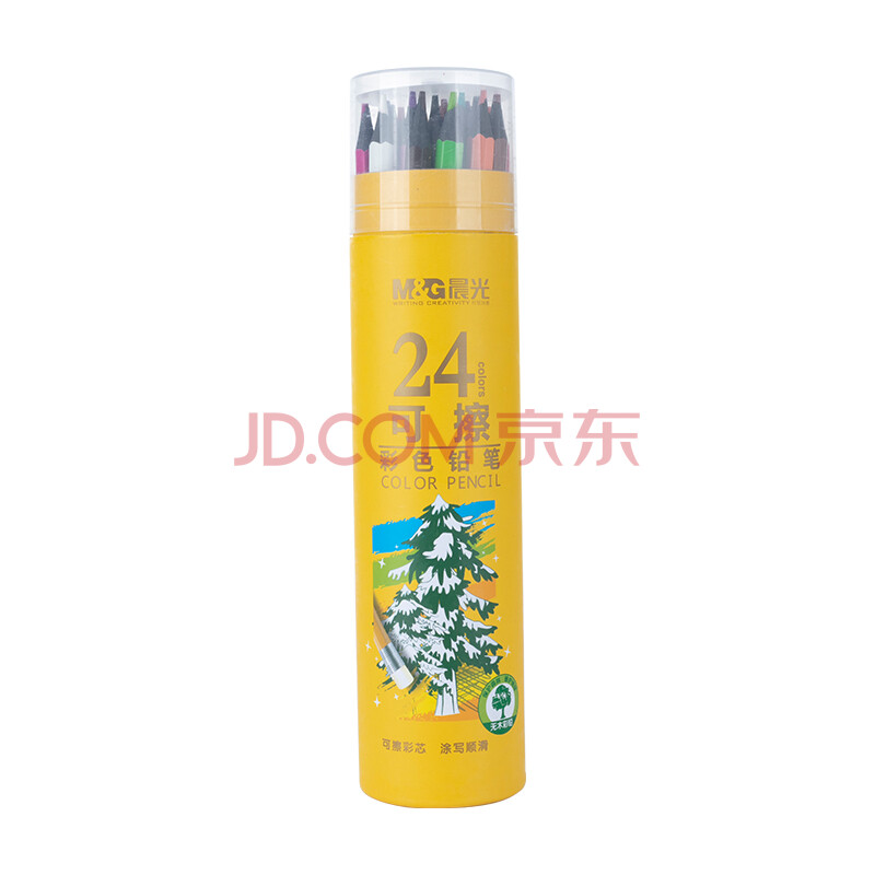 商品相册:晨光(M&G)文具24色无木环保彩色铅笔可擦彩铅小学生美术绘画填色笔手绘涂色画笔黄筒生日开学礼物AWPQ0508第1张/共8
