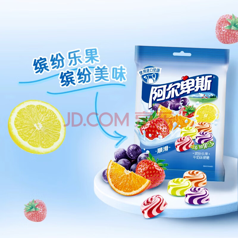 商品相册:阿尔卑斯 缤纷果园牛奶味硬糖150g 休闲零食儿童糖果聚会开学婚庆喜庆第