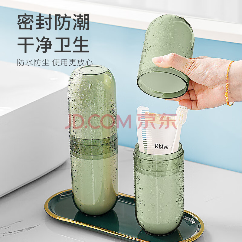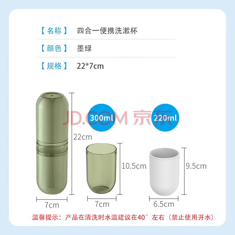 商品相册:欣沁 洗漱杯多功能四合一刷牙杯旅游牙膏漱口杯套装便携4个杯子墨绿色第