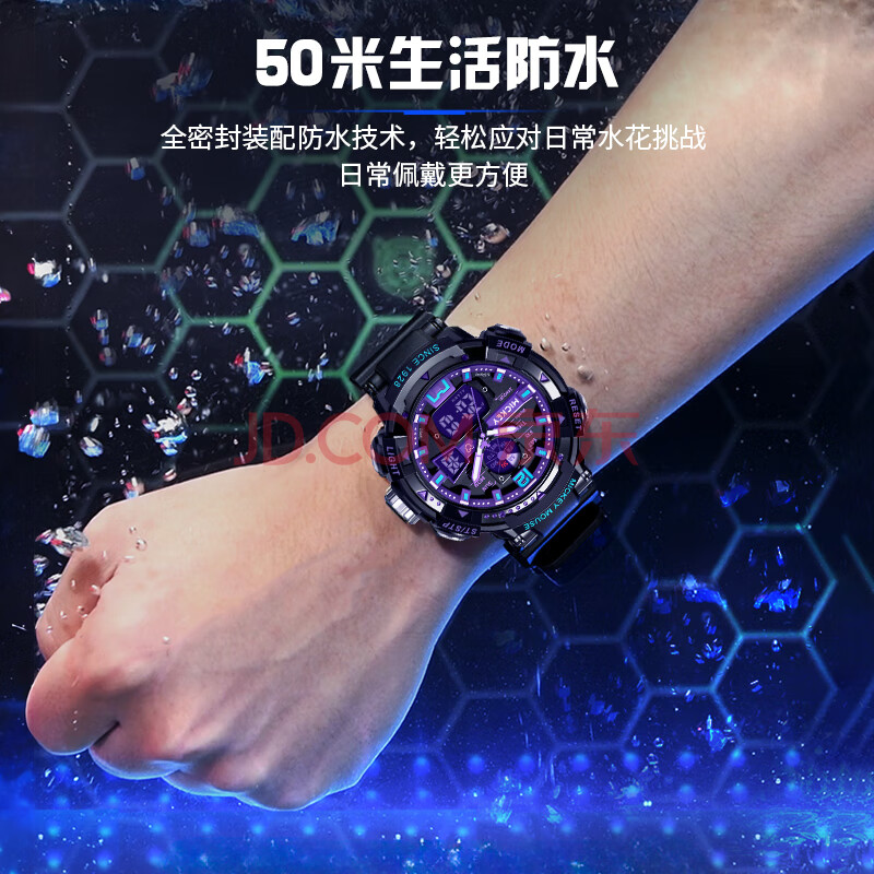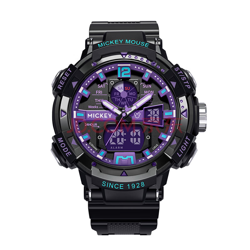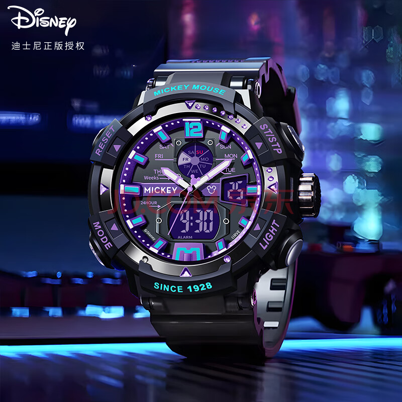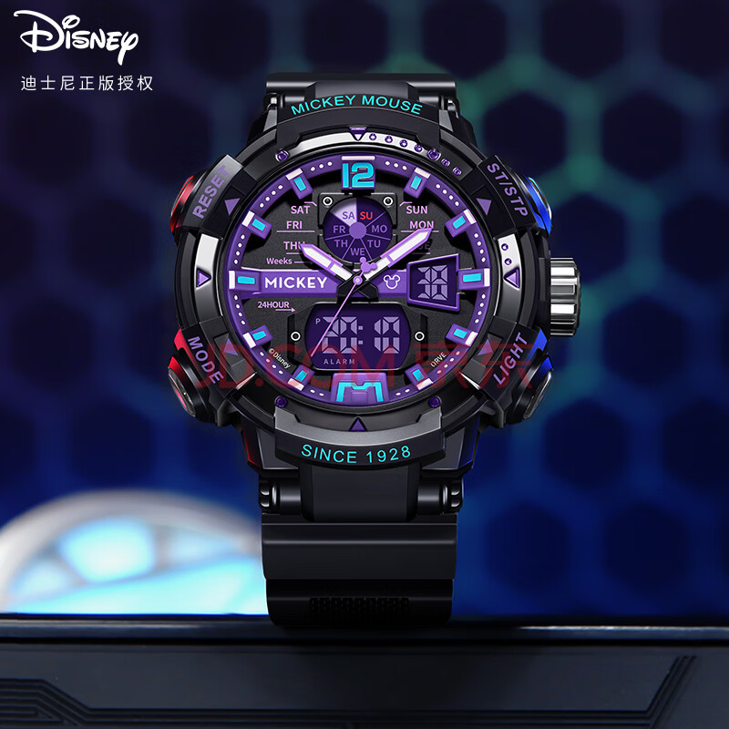 商品相册:迪士尼(Disney)手表男学生潮流运动防水青少年初高中生多功能双显电子表炫酷黑紫第