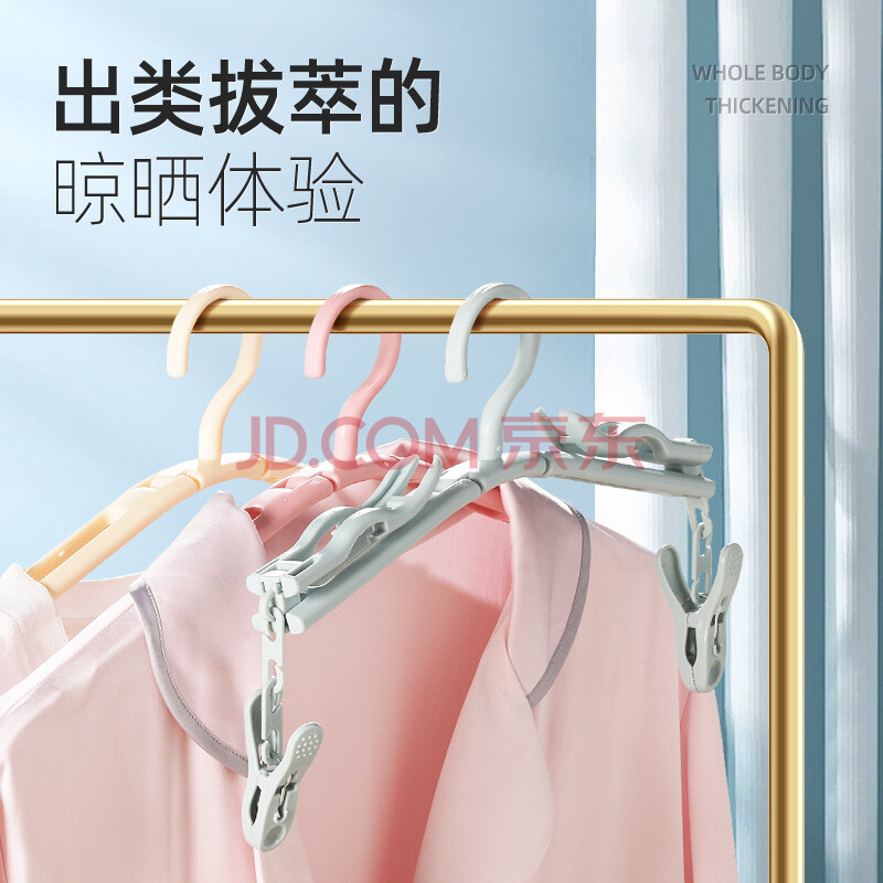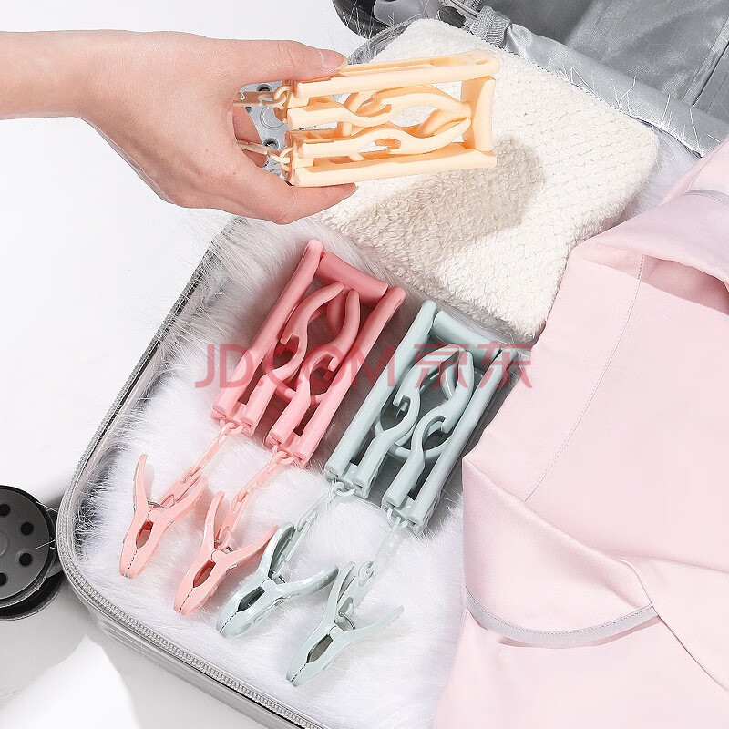 商品相册:欣沁旅行折叠衣架酒店出行多用小巧晾晒衣架便携带袜子夹子蓝色1个装第