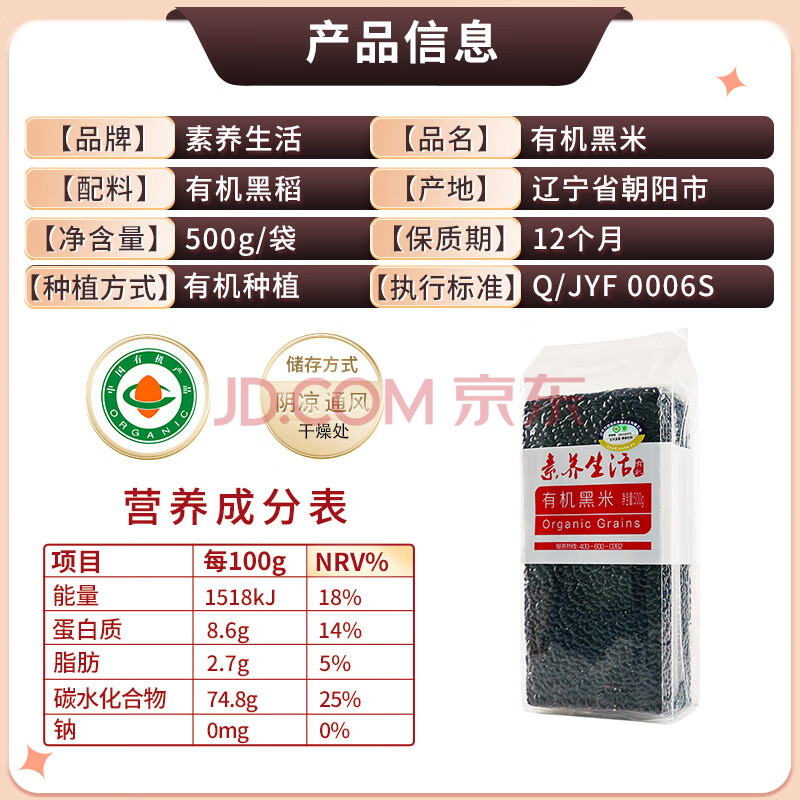 商品相册:素养生活有机黑米1斤 黑大米 黑香米 黑米饭 杂粮饭 八宝粥 腊八粥原料第