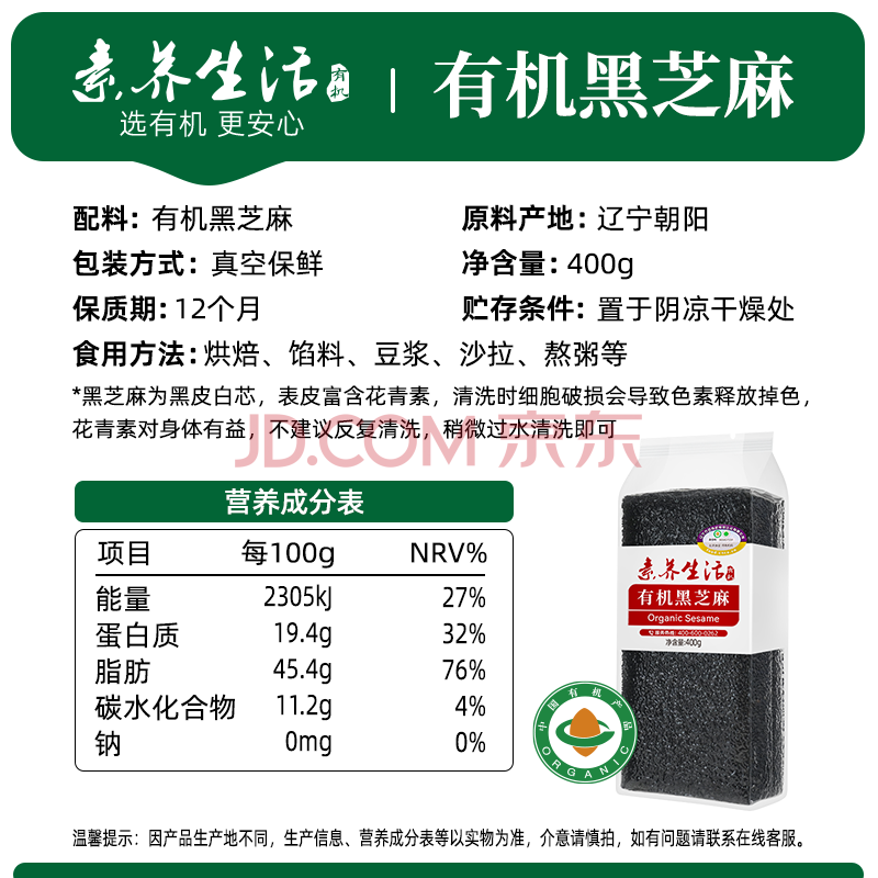 商品相册:素养生活有机黑芝麻400g 芝麻 生黑芝麻 黑芝麻糊原料 无添加 五谷杂粮第