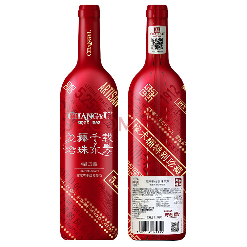 商品相册:张裕旗下龙藤名珠特别珍藏蛇龙珠干红葡萄酒750ml*6整箱装第