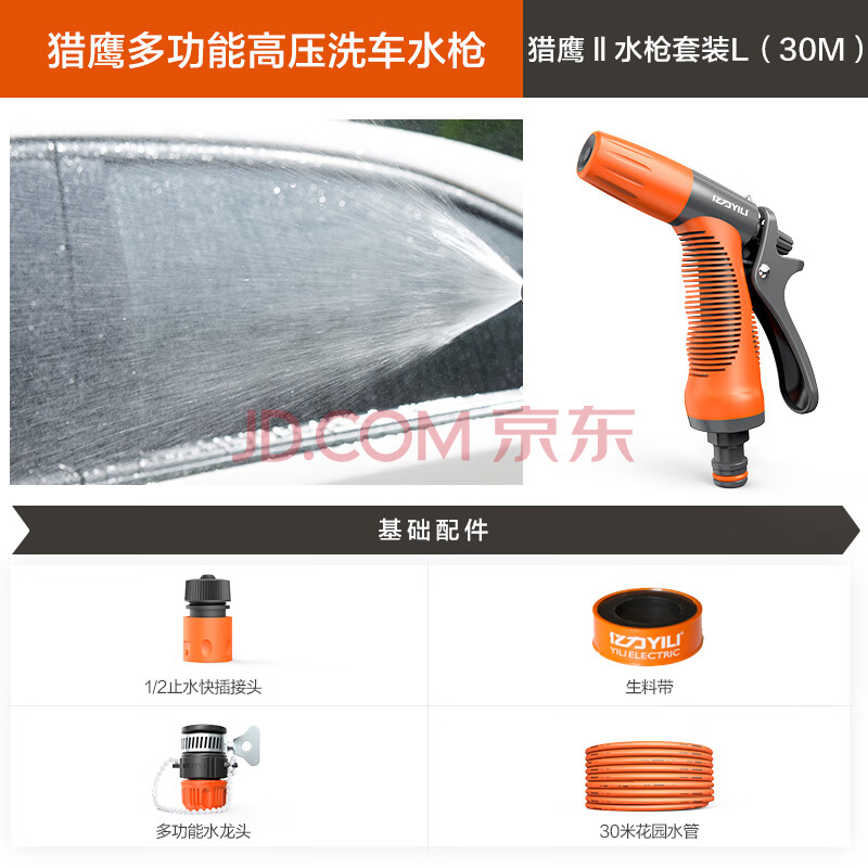 商品相册:亿力洗车高压水枪家用洗车水枪园艺浇花水枪高压喷头猎鹰30米水管套装第