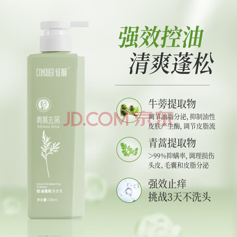 商品相册:征服控油止痒洗发水335ml青蒿去屑养发除螨洗发露去油蓬松洗头膏乳液第