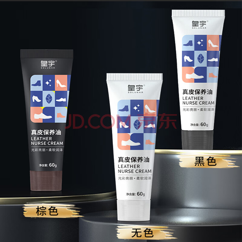 商品相册:皇宇真皮保养油60g无色皮鞋油清洁护理防水保养去污上光补色膏第