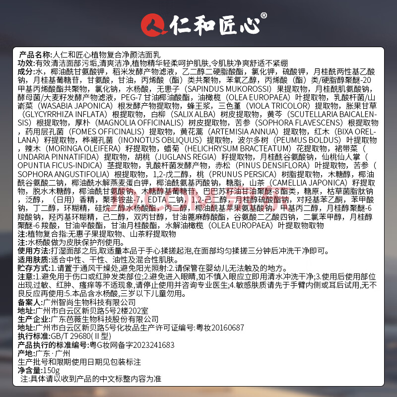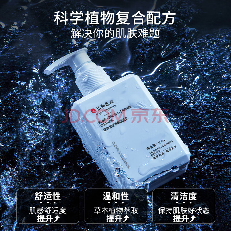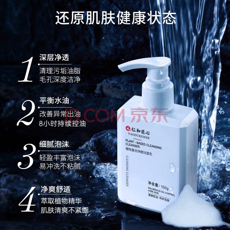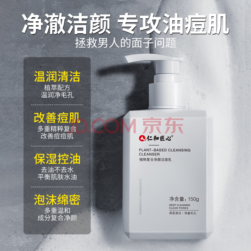 商品相册:仁和匠心植物祛痘洗面奶300g 男士控油去除螨黑头女清洁毛孔保湿洁面乳第
