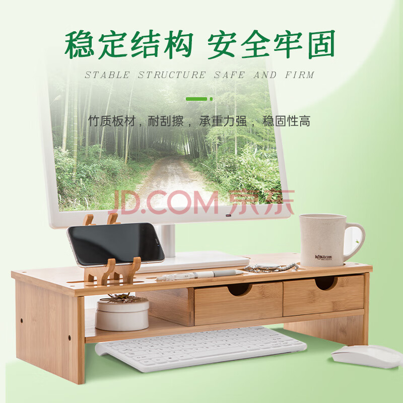商品相册:倍方(befon)显示器增高架双抽屉键盘收纳笔记本电脑手机支架置物架台式电脑底座显示器支架74437第