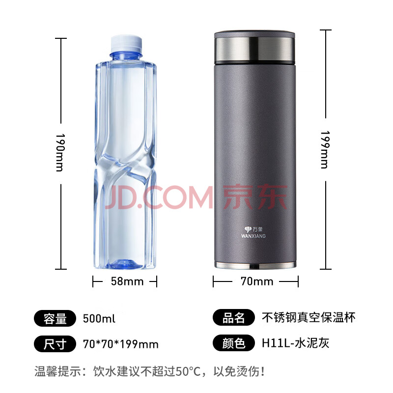 商品相册:万象(WANXIANG)保温杯车载男士大容量水杯H11L礼盒装水泥灰500ML带滤网泡茶杯第