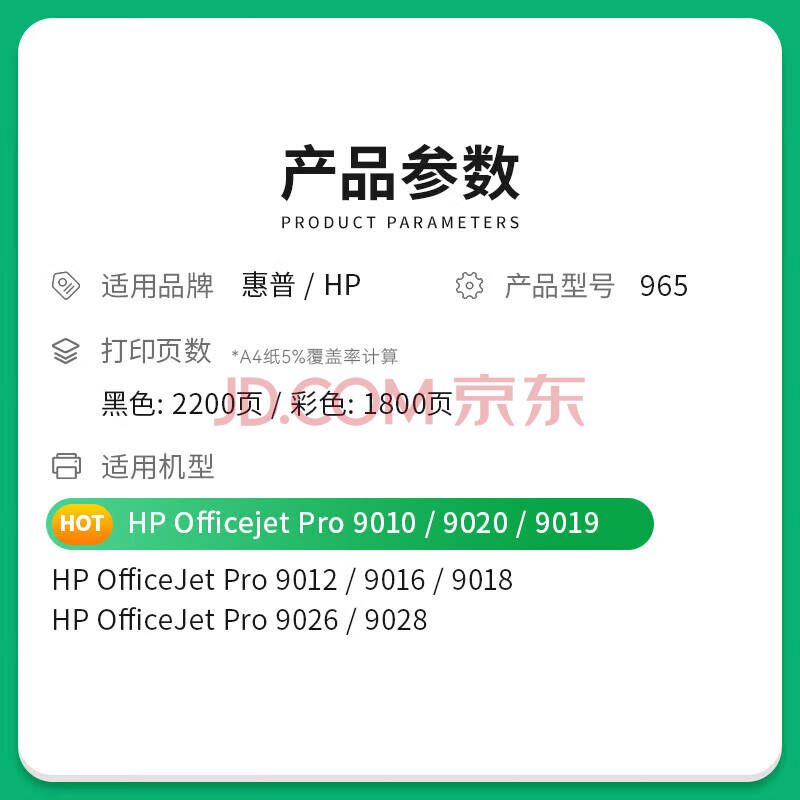 商品相册:才进适用惠普965墨盒9010 9020 9019 9012 9016 9018 9026喷墨打印机HP965xl黑彩色969XL墨水盒Officejet Pro第