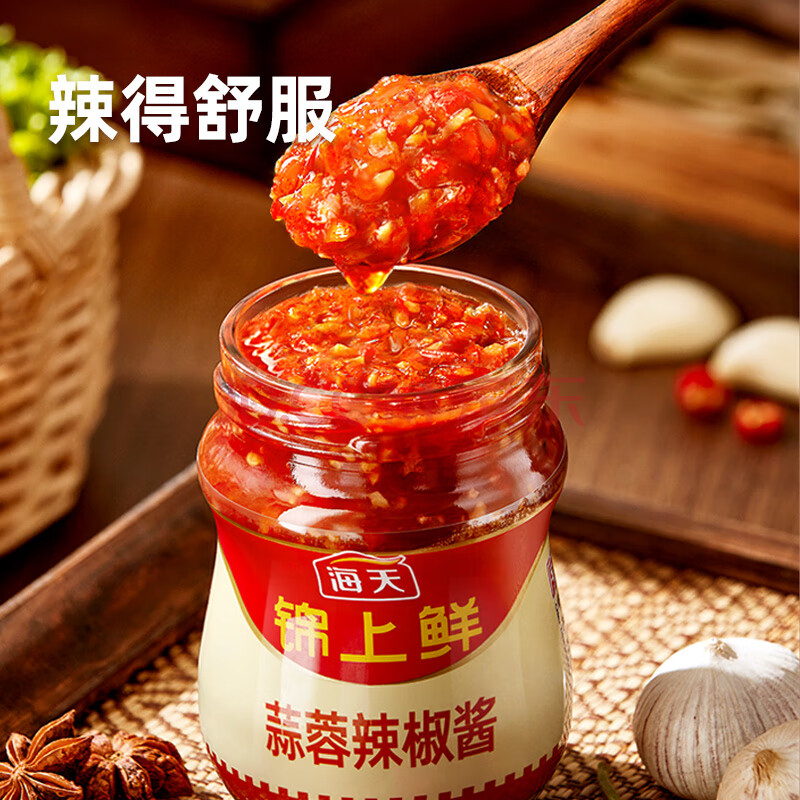 商品相册:海天锦上鲜蒜蓉辣椒酱230g 辣椒酱 蒜蓉辣酱 调味 锦上鲜蒜蓉辣椒酱第