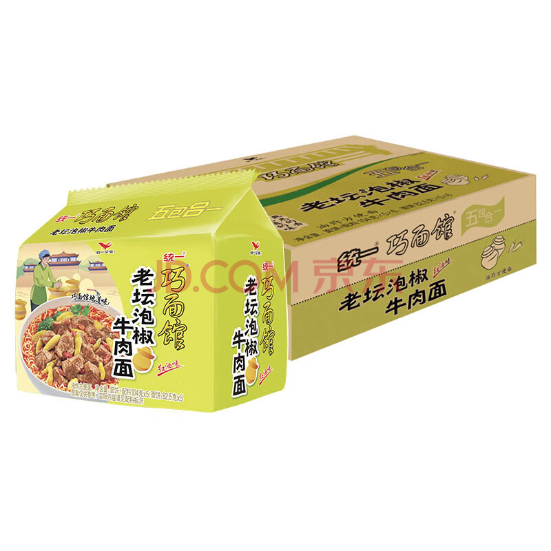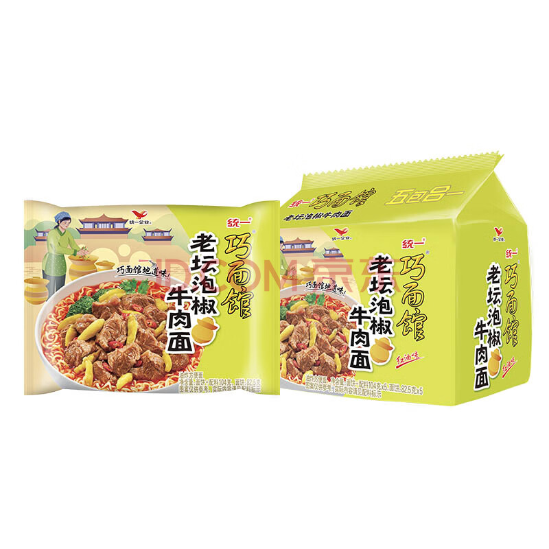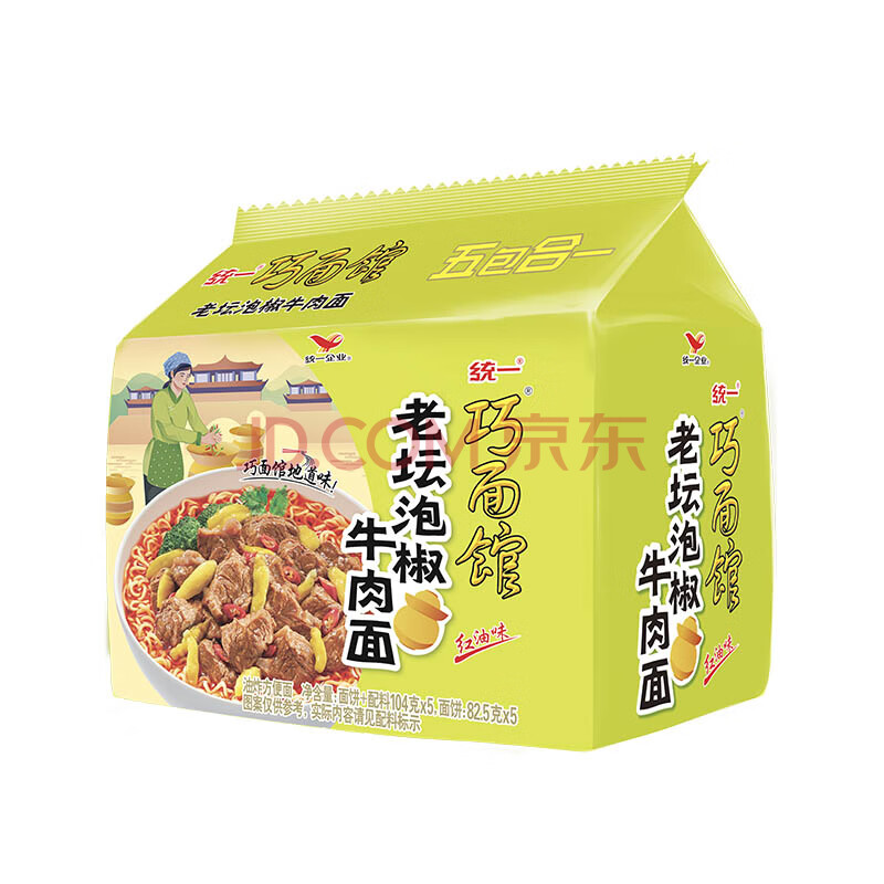 商品相册:统一巧面馆 老坛泡椒牛肉面 104g*5袋 五连包 方便面泡面速食面 第
