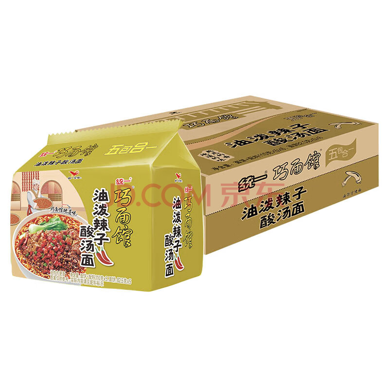商品相册:统一巧面馆 油泼辣子酸汤面 袋装 110g*5袋 五连包 方便面泡面速食面第