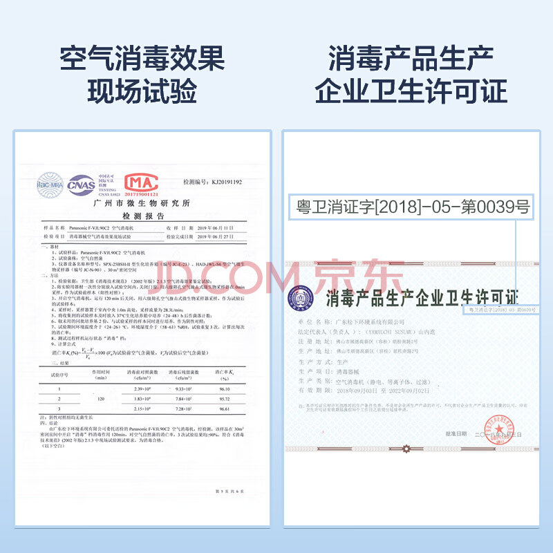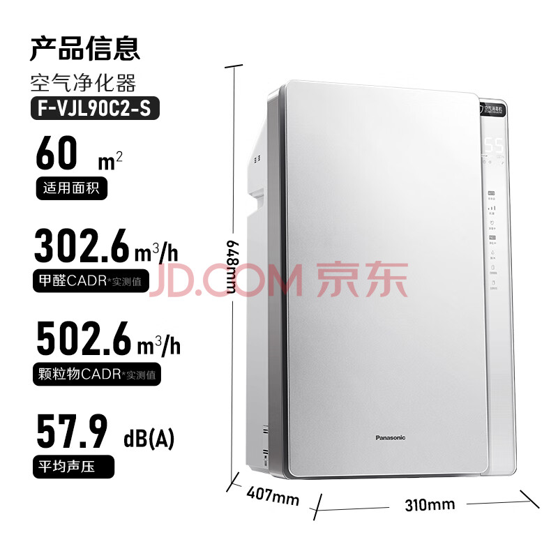商品相册:松下(Panasonic)家用空气净化器除甲醛除菌宠物除异味过敏源空气消毒机卫健委备案 加湿一体机VJL90C2礼品第1张/共8