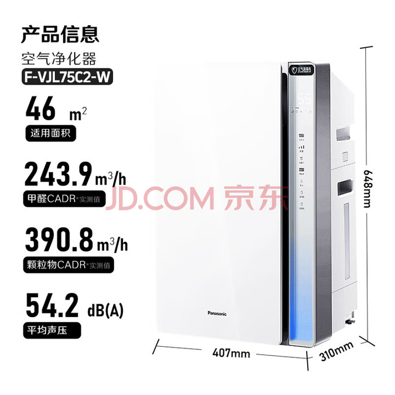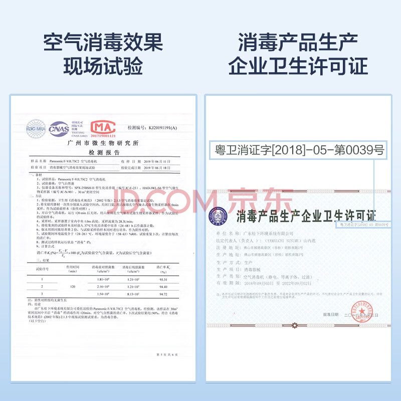 商品相册:松下(Panasonic)家用空气净化器除甲醛除菌宠物除异味过敏源空气消毒机卫健委备案加湿器一体机鼻炎75C2礼品第