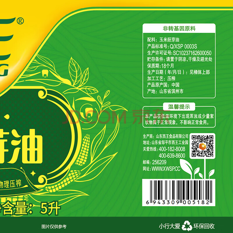 商品相册:西王 食用油 玉米胚芽油 5L 非转基因物理压榨(新老包装交替发货)第